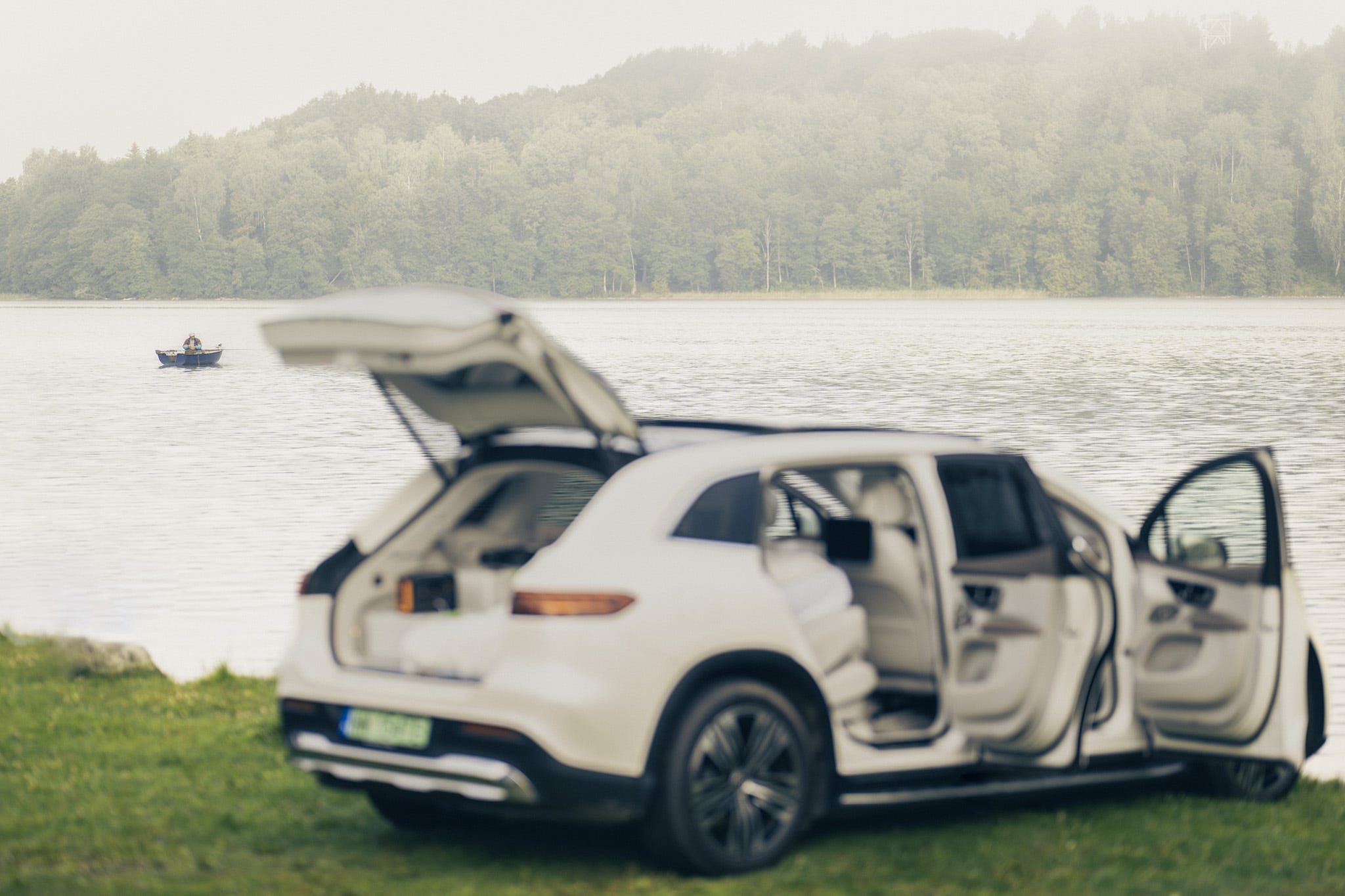 Zdrapka nr 2. Skrobię paznokciem kciuka podekscytowany i jest! Cztery doby w luksusowym apartamencie. Termin: (prawie) połowa sierpnia. Apartament muszę sobie na miejsce zawieźć sam. To Mercedes EQS SUV. Największy samochód osobowy w elektrycznej rodzinie Mercedesa. Apartament na kołach. Hasło klucz w pandemii. Nigdy nie spędziłem urlopu w camperze, EQS na pierwszy rzut oka raczej przypomina sam salon ze skórzanym wypoczynkiem, niż kompletny apartament z sypialnią i łazienką.
